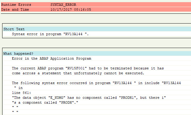 In the example above SAP had trouble regenerating condition table A144 and it was due to the custom component PRODH1 being missing from KOMG. PRODH1 was a material specific attribute that should have been included in a customer specific append structure to the Pricing Communication Item structure KOMPAZ.