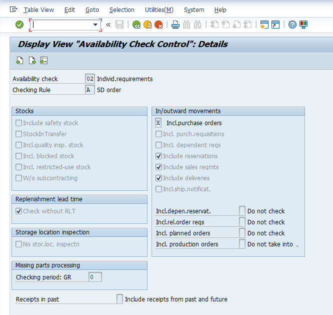 Examples of the MRP Elements that are impacted by each option and examples of transactions that generate or modify the MRP Elements are included. The screenshot below is an example of a standard SAP Availability Check for sales orders.